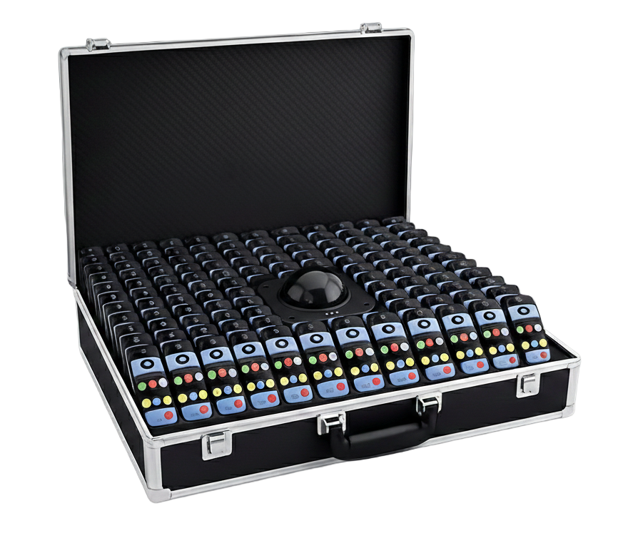 הוא שלט אלקטרוני הקולט אונליין את לחיצות המשתתף, כך שעל המסך משתקפים תוצאות מדידות של תשובות נכונות, סקרים, חלוקת קבוצות, פילוח נתונים מדוייק. קליקרים בתפעול קל. נוח. ללא אינטרנט.